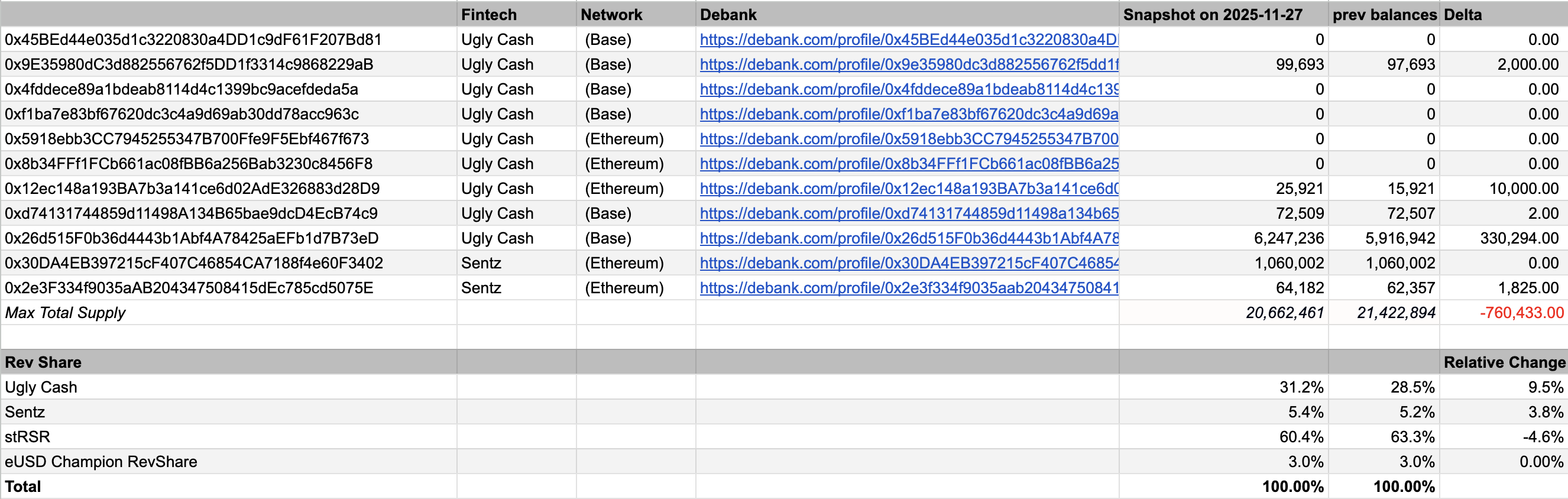 This is an update to the existing ongoing proposal of sharing some of the eUSD Revenue with FinTechs(Ugly Cash and Sentz). eUSD shares underlying revenue with distribution partners(i.e. fintech apps) who use and promote eUSD for their customers.